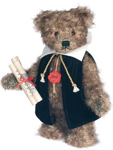 Christas Bärchen: Galileo Galilei 31 Vor 400 Jahren (1609) erfand Galileo das Teleskop – und Teddy-Hermann ehrt ihn mit dieser edlen Figur, reichhaltigst ausgestattet, gelockter Mohair, 31 cm groß (linker Fuß: "2009 Jahr der Astronomie")