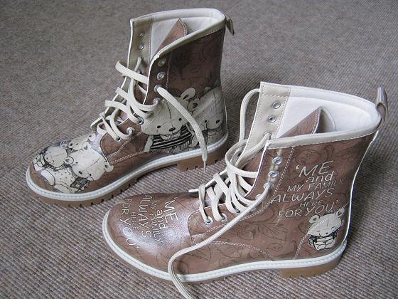 Eigentlich hat meine Frau das Bärchensammeln eingestellt. Nach 1.111 Bärchen reicht es. Da sind Bärchen als Teddybären aus den unterschiedlichsten Materialien wie Texilfasern aus Mohair oder Alpaca, aber auch Bären aus Metall oder Holz. Die Größe variiert von wenigen Millimetern bis hin zu weit über einen Meter. Einige habe ich ja in diesem Blog bereits vorgestellt. Dann gibt es auch Bären für den Hausgebrauch wie Kaffeekannen, Teebecher und auf Textilien wie Sweatshirts. Was irgendwie noch fehlte, waren Bärchen, die auf Schuhwerk abgebildet sind. Und es kam so, wie es kommen musste: Bei einem Bummel durchs Hamburger Schanzenviertel letzten Samstag entdeckte meine Frau Boots, auf denen gleich eine ganze Bärenfamilie abgebildet ist. Und so war der Vorsatz, keine weiteren Bärchen zu sammeln, schnell gebrochen. Wenigstens für dieses eine Mal.
