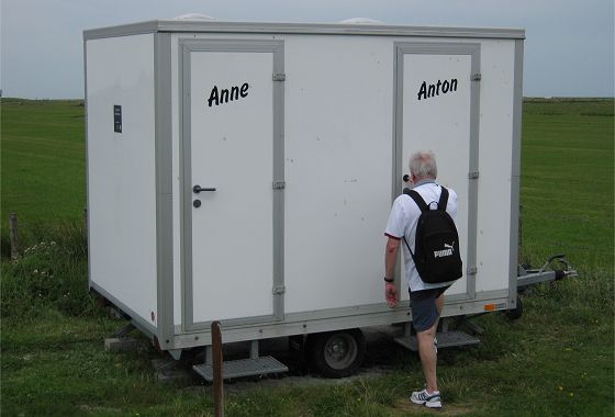 Ach, was lamentiere ich hier. Ich sprach eingangs vom Urlaub. Und einen Teil davon machte ich mit meiner Frau – wie schon bekannt sein dürfte – auf einer Hallig. Halligen, Inseln, Nordsee! Wer denkt da nicht an Wellen, Strände und Sturmgebraus! So mancher Windzug zerzauste mir das schütterwerdende Haar, bis es mir zu Berge stand. Im Sturm klebte mir die Jacke förmlich am Körper. Und das Donnern der aufgewühlten Wellen erhöhte deutlich den Harndrang. Da musste Willi für kleine Antons.