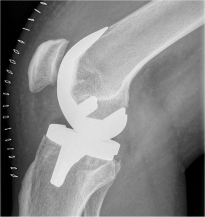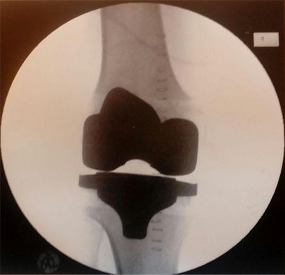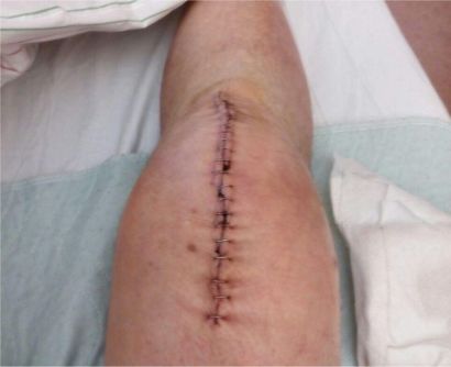 Willis neues Kniegelenk (rechts) – die Wundklammern sind gut sichtbar