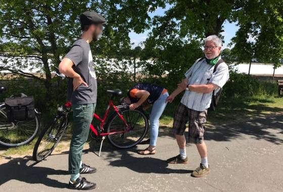 Nein, ein solcher lebensgefährlicher Auftrag war es nicht. Es ging nur am Himmelsfahrtstag mit Muddern, die das Kommando übernommen hatte, den älteren der beiden Söhne, seiner Freundin und mir ins Grüne. Das Wetter war prächtig, also sonnig, windstill und nicht ganz so warm. Also genau richtig, um mit den Rädern die Gegend um Tostedt zu erkunden.