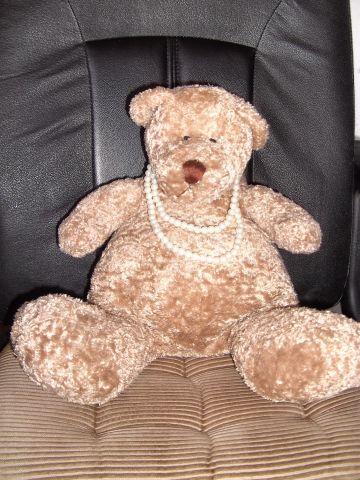 Einen weiteren Teddybären in der Sammlung meiner Frau haben wir Bärbel getauft. Bärbel mit ihrer Perlenkette ist etwas füllig geraten und über den Versandhaushandel erworben. Leider gibt es zum Bär Bärbel keinerlei Herkunftsangaben. Es ist gewissermaßen ein Waisenkind und hat daher einen bevorzugten Platz erhalten (auf der Rückenlehne der Wohnzimmercouch), damit es sich nicht vereinsamt fühlt.