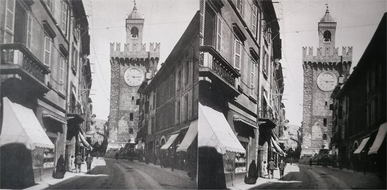 Uhrturm in Brescia (Stereoskopische Aufnahme)