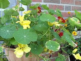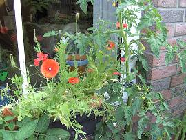 Auch Nutzpflanzen haben schöne Blüten (ist Mohn eine Nutzpflanze?). Neben Kräutern haben wir einige Tomatenpflanzen, an denen schon erste Früchte kurz vor dem Rotwerden stehen. Und Kürbis blüht und verspricht große Früchte für den Herbst. Die Kirschen und die Beerenfrüchte (rote und schwarze Johannisbeeren, Stachel- und auch einige Himbeeren) sind längst in unsere Mägen gelandet.