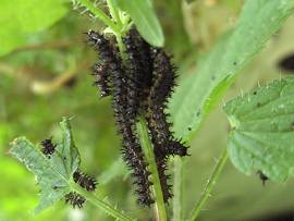 Da wir Schmetterlinge mögen, sorgen wir auch dafür, das deren Nachwuchs eine Chance in unserem Garten hat. So lassen wir u.a. auch Brennnesseln stehen, die für einige Schmetterlingsarten als Futterpflanze für deren Raupen dienen. Sollte es sich bei den Raupen in unserem Garten wirklich um die des Tagpfauenauges handeln?