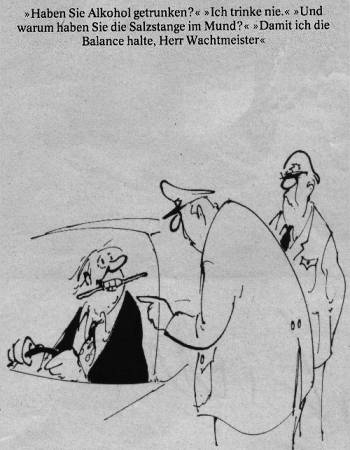 Meist behandele ich, wie Sie wissen, die Technik eines Witzes, hier etwa die Anspielung. Aber Ihnen ist natürlich auch längst klar, daß die Gefühle, die von dieser Technik ausgelöst werden, das Entscheidende sind. Peinlichkeiten, Aggressionen – oder Bosheiten wie hier: Ein junger Mann will frühmorgens im See baden, splitternackt. Da warnt ihn ein Angler: „An ihrer Stelle würde ich was anziehen, die Fische schnappen hier schon nach dem kleinsten Wurm.“