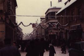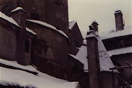 Endlich habe ich auch das zweite Fotoalbum mit den Bildern unserer Rumänienreise zum Jahreswechsel 1984/1985 gefunden. Somit hier als Nachtrag die fehlenden Fotos zur ‚wilden’ Silvesterfeier (Silvester 1984 in Sinaia/Rumänien). Der erwähnte Weihnachtsbaum ist auf dem Foto nur der Fotoperspektive wegen windschief. Aber am nächsten Morgen (ich war in den Räumlichkeiten aus zu denkendem Grund erst zur Mittagszeit zugegen), ich schwöre es, hing der Baum schräg im Raum. Danken möchte ich hier der sehr freundlichen Bedienung, besonders dem Kellner Ioan, der sich trotz gewisser Sprachschwierigkeiten hergab, um am Ende sein Inneres nach außen zu kehren und sich der guten Laune im Saal anschloss.