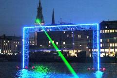 Parallel zum Anpfiff der Fußball-Weltmeisterschaft am 9. Juni soll eine Laser-Symphonie über Hamburgs Dächern für weltweite Aufmerksamkeit sorgen. Aus acht Laserkanonen, positioniert auf den höchsten Bauwerken der Stadt, werden gebündelte, grüne Lichtstrahlen in die blauen Leuchtstoff-Tore gelenkt, die bis dahin auf fast 300 Gebäuden errichtet werden sollen. Mit dem 29. März leuchtet das 44. „Blue Goal“ in Hamburg beim NDR, dem Norddeutschen Rundfunk.