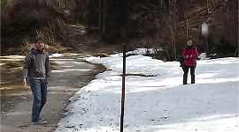 Aus Schnee lassen sich schnell Schneebälle formen, sowohl der normalen handlichen Art als auch die Großen, die sich dann höchstens noch rollen lassen. Selbst auf dem Wank lag noch genügend Schnee. Und da Nebel herrschte und sonst niemand zuschaute, entwickelte sich schnell eine Schneeballschlacht – und dicke Schneeklumpen rollten wie Lawinen den Abhang hinunter.