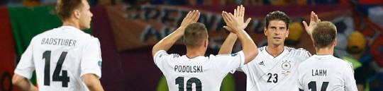 Manchem Wahlspruch traut man nicht eine solche Allgemeingültigkeit zu (der Spruch stammt übrigens von Sir Alf Ramsey: „Never change a winning team.“). Nach dem eher glücklichen Sieg gegen Portugal setzte Bundestrainer Joachim Löw bei der Fußballeuropameisterschaft auf die gleiche Startelf auch im Spiel gegen die Niederlande – und lag damit richtig. Zuvor gab es nämlich reichlich Kritik an der Aufstellung: Podolski, Schweinsteiger und Lahm zeigten gegen die Portugiesen nur einen Bruchteil ihrer möglichen Leistung. Und Co-Kommentator Mehmet Scholl hatte sich besonders Mario Gomez vorgenommen. Er warf dem Stürmer mangelnden Einsatz vor: „Ich hatte zwischendurch Angst, dass er sich wundliegt und mal gewendet werden muss.“