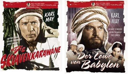 Beide Filme sind zum Karl May-Jahr auf DVD erschienen. Ich habe mir den Spaß erlaubt, beide Filme an einem längeren Abend anzuschauen. Viele kennen aus dem Fernsehen sicherlich die späteren drei Verfilmungen (1964 – 1965, dazu später einmal mehr) mit Lex Barker als Kara Ben Nemsi, der dann ja auch Old Shatterhand verkörperte, was durchaus sinnvoll war, denn sowohl Kara Ben Nemsi als auch Old Shatterhand waren gewissermaßen die Alter Egos von Karl May. Hadschi Halef Omar wurde in diesen Filmen von Ralf Wolter gespielt. Als ich mich jetzt mit Karl May und besonders mit den Verfilmungen der Orient-Romane beschäftigte, erinnerte ich mich daran, dass ja auch Georg Thomalla den Hadschi Halef Omar gespielt hatte (ich muss diese Filme in früher Jugend im Fernsehen gesehen haben), und dass ich damals Thomalla irgendwie witziger fand als dann Ralf Wolter.