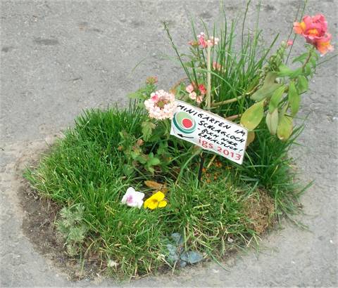 Alles begann damit, dass der junge Australier Steve Wheen sich auf dem Weg mit dem Rad zur Uni regelmäßig über die schlaglochreichen Straßen Londons ärgern musste. Also beschloss er eines Tages, sich dem Problem spielerisch zu nähern – und schaffte mit Hilfe von Pflanzen und kleinen Requisiten einen Minigarten im Asphalt.