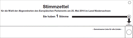 Jeder wahlberechtigte Bürger hat nur eine Stimme. Da sowohl die Dreiprozent- wie auch die Fünfprozenthürde vom Bundesverfassungsgericht für verfassungswidrig und nichtig erklärt wurden, muss eine Partei erstmals nur das natürliche Quorum von ca. ein Prozent der Stimmen erzielen, um mit einem Abgeordneten ins Europäische Parlament einzuziehen. In Niedersachsen stehen 24 Parteien zur Wahl. Weitere Informationen zur Europawahl in meinem Wohnort Tostedt siehe: Europawahl