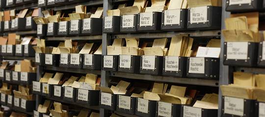 In den vergangenen 10 Jahren haben fleißige Mitarbeiterinnen und Mitarbeiter in Hamburg und München Karte für Karte dieser Zentralen Namenskartei digitalisiert. Wortwörtlich von A bis Z. 20 Millionen Suchanträge geben Auskunft über Namen, Geburtsort, militärischen Dienstort und vieles mehr. Hinzu kommen dann Karteikarten mit Angaben über Inhaftierung, Entlassung und Verbleib. Insgesamt 53 Millionen Karten haben sich in München seit dem Ende des Zweiten Weltkriegs angesammelt. Das entspricht 31 voll geladenen LKW. Kurz vor Weihnachten 2013 ging nun die letzte Karte durch den Scanner. Die Mitarbeiterinnen und Mitarbeiter hatten die Karten per Hand auf speziell dafür konstruierte Scanner gelegt. Oft mussten sie dafür die Unterlagen erst aus Klarsichtfolien holen oder Klammern entfernen. Bis zu 10 Scannerplätze waren parallel im Einsatz.