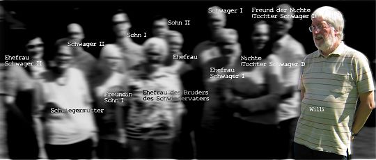 Huihuuu, ich bin keine Dame, ich bin Willi. Und so heißt das Bild natürlich auch ‚Gruppenbild mit Willi‘ und nicht ‚… mit Dame‘. Und wer mich halbwegs kennt, der weiß, dass es mir natürlich nicht um die Darstellung einer bestimmten Gruppe geht (hier der Klan, die Mischpoke meines Ehegesponst), sondern vielleicht, wahrscheinlich, bestimmt um das Bild (hier ein Foto) selbst.