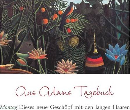 Die Tagebücher von Adam und Eva von Mark Twain gibt es mit paradiesischen Bildern von Henri Rousseau als ‚handfestes‘ Büchlein, gegen das ein digitales Format (eBook) einfach nicht mithalten kann.