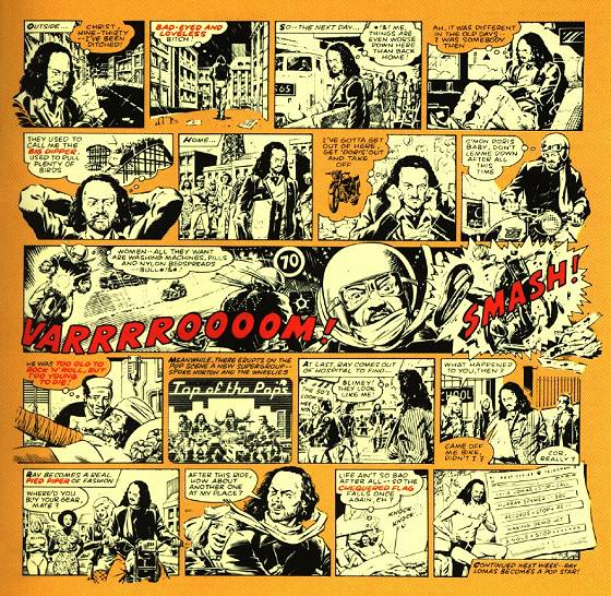 Nun zu einem Bühnenstück reichte es nicht. Dafür wurde die Plattenhülle mit einem ansehnlichen Comic versehen, das die Geschichte von Ray Lomas, einem alternden, wenig betuchten Rocker erzählt. Die Geschichte findet sich dann natürlich auch in den Liedern wieder. Wirklich aufregend ist diese nicht gerade, auch wenn Ray am Schluss, weil sein Musikstil wieder gefragt ist, zum Popstar avanciert.