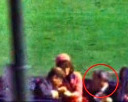 Auf Bild 313 sehen wir dann den tödlichen Schuss (dieses Bild wurde lange Zeit nicht gezeigt und war entfernt worden). Anschließend sackt Kennedy nach hinten weg, was vermuten lässt, dass er von vorn getroffen wurde. Wie sich ein Kopfschuss (wenn das Projektil den Kopf durchdringt) auswirkt, ließ sich von mir auf die Schnelle nicht recherchieren. Ich denke eigentlich, dass in der Regel die Kugel beim Austritt eine größere Verletzung hinterlässt (was dann aber bedeuten würde, dass der Schuss doch von hinten kam). Aber ein weiteres (makaberes Indiz) spricht für den Schuss von vorn: Jacqueline Kennedy, die Frau des Präsidenten, lehnt sich weit aus dem Wagen nach hinten hinaus, um etwas ‚einzusammeln’ (es ist wohl ein Teil der Schädeldecke, das nach hinten geflogen ist).