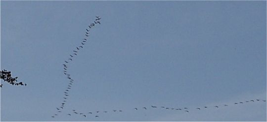 Wer möchte nicht wie die Zugvögel gen Süden ziehen, wenn es bei uns kalt und dunkel wird? Nun, das kleine Städtchen, in dem ich hause, wird in diesen Tagen von vielen dieser Zugvögel überflogen. Tostedt ist eine Art Einflugschneise. Schon früh hört man bei schönem Wetter das Geschnattere, bevor die Flieger in großer Anzahl zu sichten sind. Sie kommen aus östlicher Richtung und fliegen weiter gen Westen, denn viele Vögel suchen sich im Abendgrauen einen Rastplatz in der Nähe wie das Tister Bauernmoor bei uns, das zur Rast von Kranichen bestens geeignet ist.