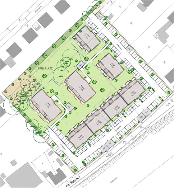 Die jetzige Planung sieht schon etwas anders aus als damals bei der Informationsveranstaltung der PGN vorgestellt. Auf eine Zuwegung von der Poststraße her wurde verzichtet. Diese Anbindung soll nun lediglich als Fuß- und Radweg genutzt werden. Damit entfallen auch die PKW-Stellplätze im hinteren, an die Grundstücke in der Morlaasstraße angrenzenden Bereich. Allerdings ist das hintere Haus mit 10 Wohneinheiten näher an eben diese Grundstücke in der Morlaasstraße gerückt, was von den Betroffenen dort mit wenig Begeisterung aufgenommen wurde.